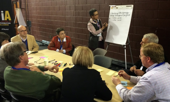 A day-long program of inspiring speakers and brainstorming was held on January 22, 2015, at the Clarice Smith Performing Arts Center. Sixty-five lab and center directors from across campus and diverse disciplines gathered to discuss the challenges they face and the potential opportunities ahead. This event was co-sponsored by the Office of the Vice President for Research, the Future of Information Alliance, and the Clarice Performing Arts Center. #UMDFuture
